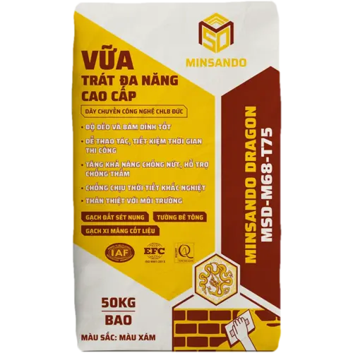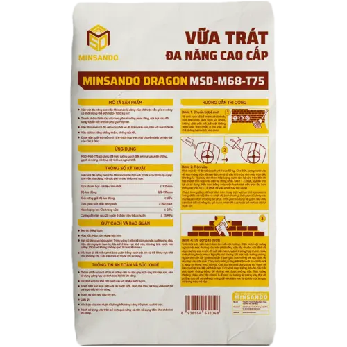 – Vữa trát đa năng cao cấp Minsando Dragon MSD-M68-T75 dùng để trát tường gạch đỏ truyền thống, gạch xi măng cốt liệu, nội thất và ngoại thất.